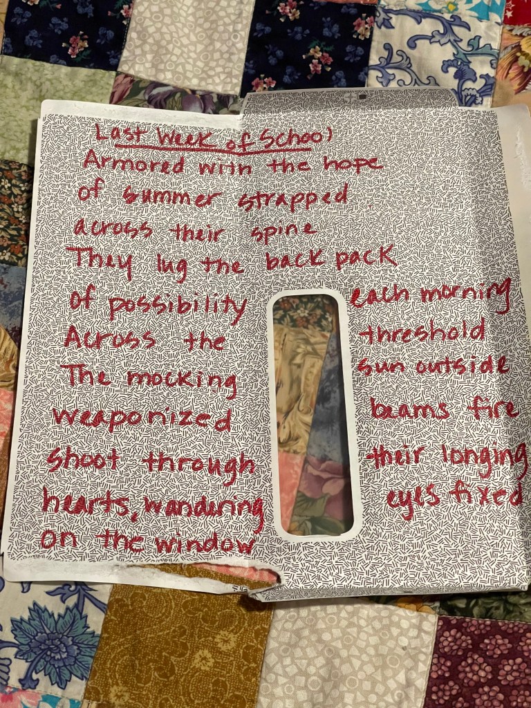 May 20, 2022May 19, 2022Danielle VerwersLeave a Comment on Envelope Poem #1 Envelope Poem #1 Share this: Click to share on X (Opens in new window) X Click to share on Facebook (Opens in new window) Facebook Like Loading...